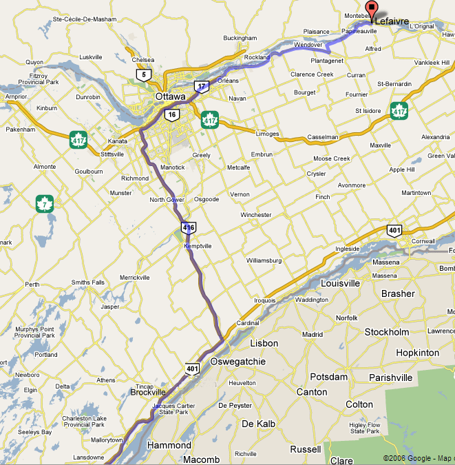- Prenez l’autoroute 40 et dirigez vous en direction d’Ottawa par la 417.